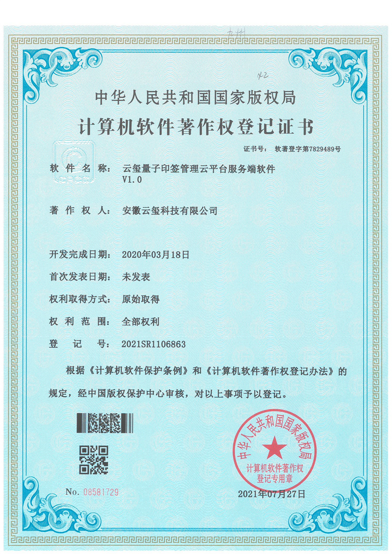 云璽量子印簽管理云平臺(tái)服務(wù)端軟件V1.0
